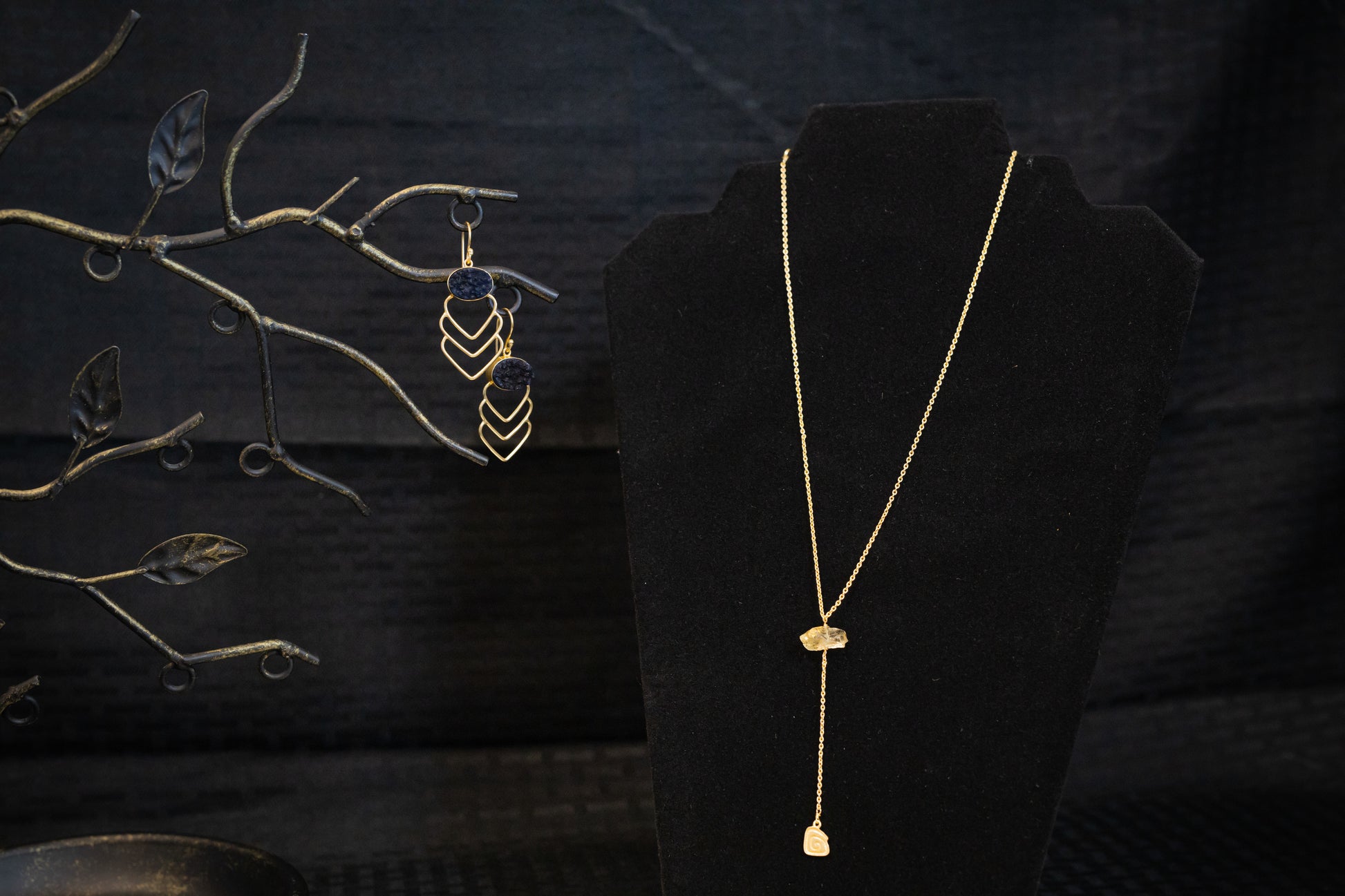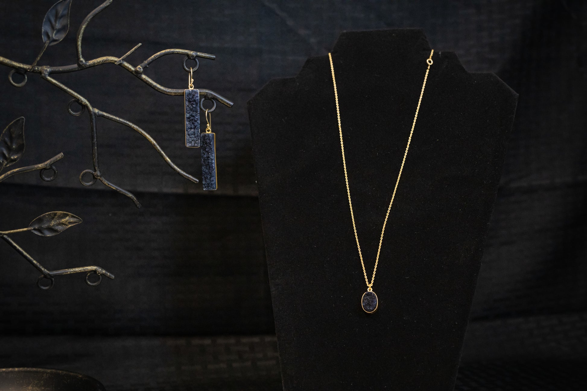 Pick a set for $99.99, 30% off the normal price. Pick either the Azure Blue Slab Earrings or the Azure Blue Leaf Earrings with either the Crystal Night Neckpiece or the Gemstone Charm Necklace. You get one pair of earrings and one necklace in this set!