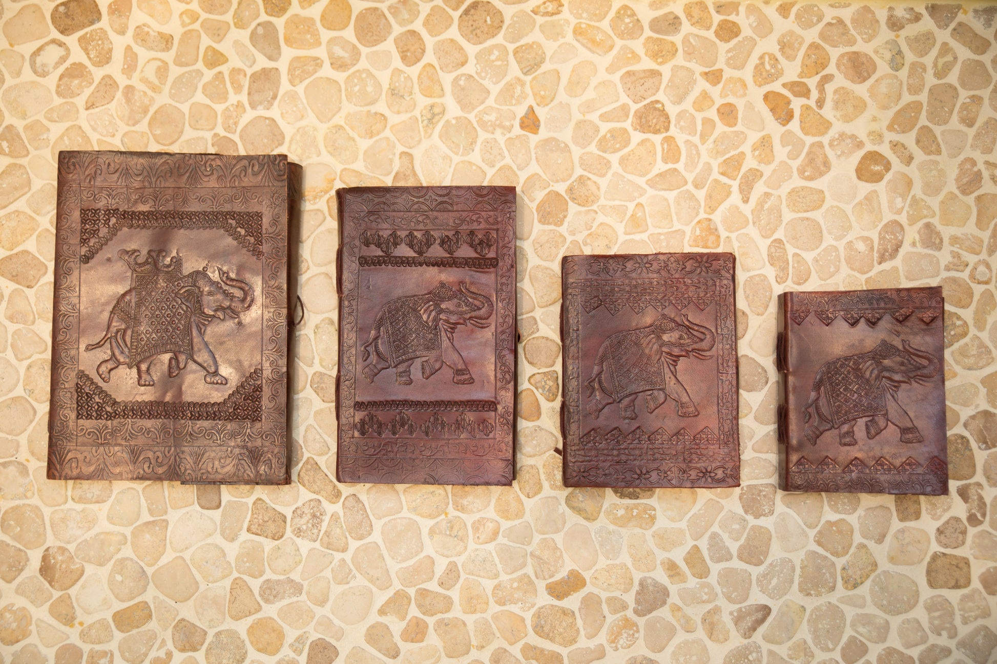 Handcrafted leather journal with an elephant stamped cover. This leather-covered notebook is perfect for bullet journaling, keeping a diary, scrapbooking, sketching, and travel journaling. This is a great gift option for both men and women.