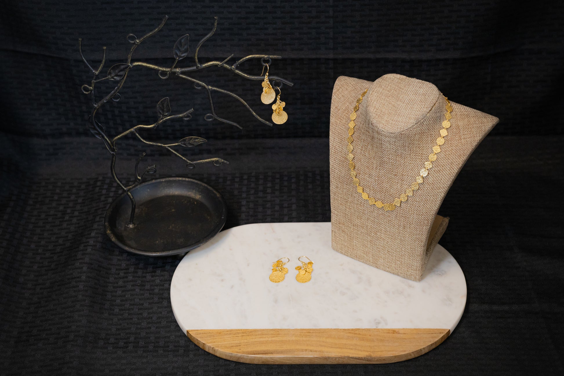 Save 25% on our gold line! If you're interested in our gold coin jewelry, then get both the necklace and earrings together at a discounted price! This deal comes with one pair of gold coin earrings and one gold coin necklace.