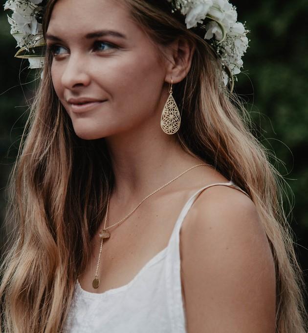Tips for Caring for Your Jewelry Well (and our pledge) - Since this piece of jewelry is gold-plated (22K), there are precautions that you should take to ensure the longevity and shine of the piece. Do not wear this jewelry in water, and try not to expose to humidity over long periods of time (best if stored in a dry, cool place). For the best look, clean the jewelry after each usage with a cotton ball or soft cloth to restore shine. If more cleaning is required, use warm water (mild, soapy water if necessary).