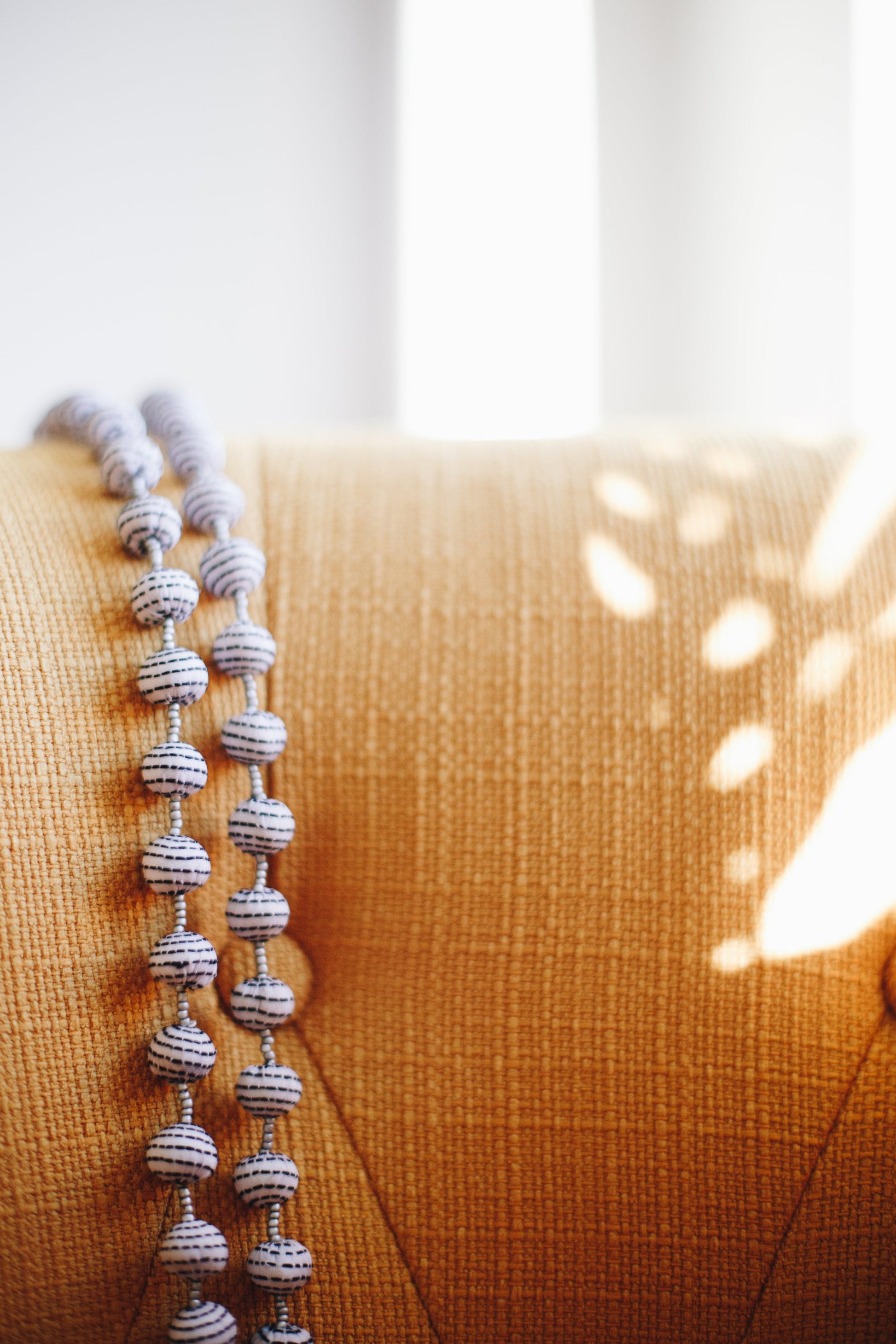 If you're interested in our Jubilee love earrings or our Sari necklaces, then buy both together at a 20% discount! Choose from a selection of stitching and bead colors on the Sari necklace to find your preferred counterpart for the Jubilee love earrings.