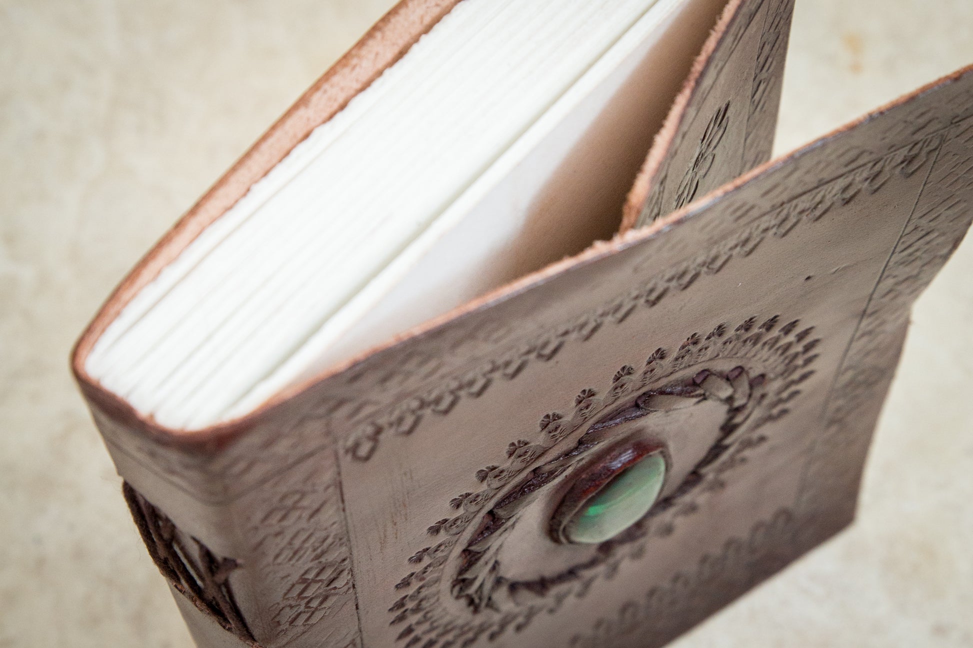 Matching Advice: Check out this same journal but with a different color stone! We have a variety of options, including our Turquoise Leather Journal, our Tiger Eye Leather Journal, and our Blue Onyx Leather Journal.