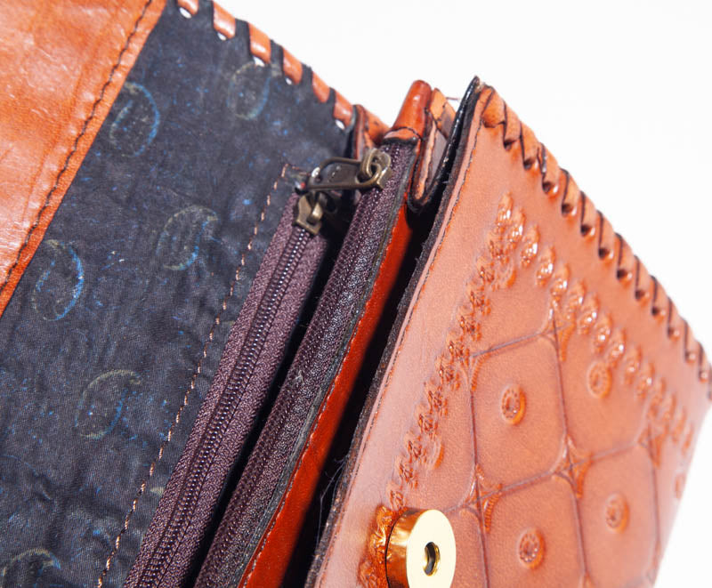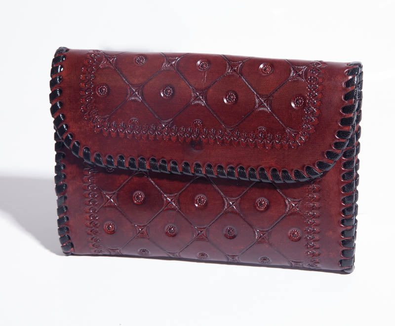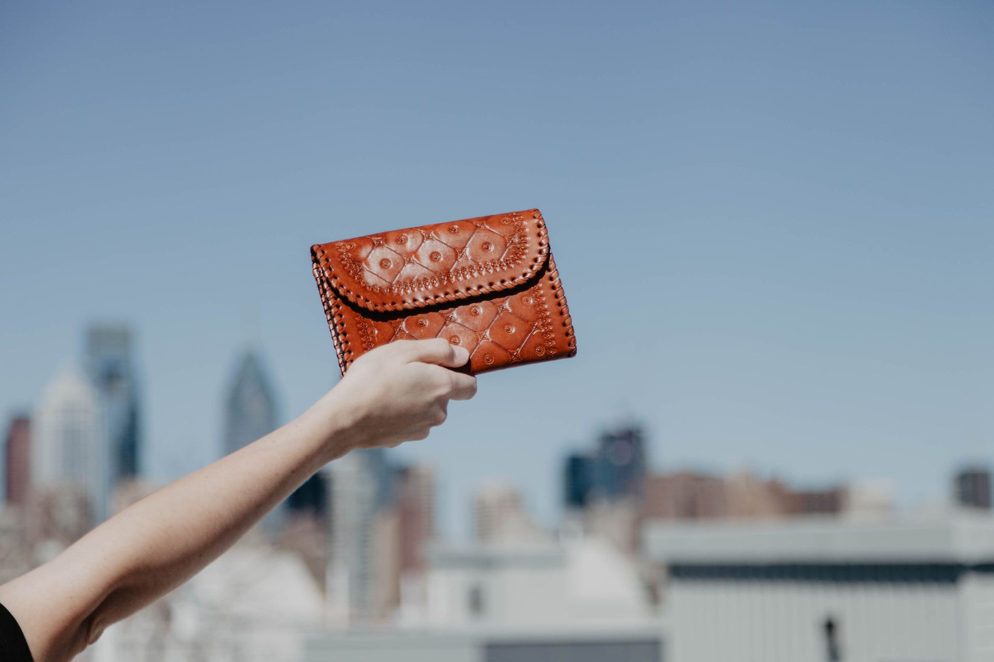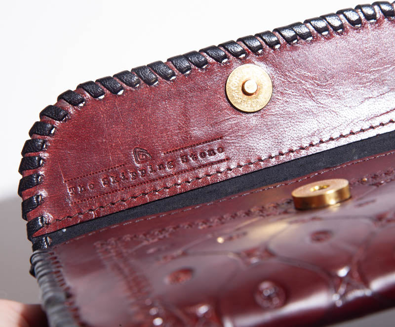 The Skipping Stone's handmade leather wallet is a great item for you or to get as a present. It comes in two different shades: sunrise or mahogany.